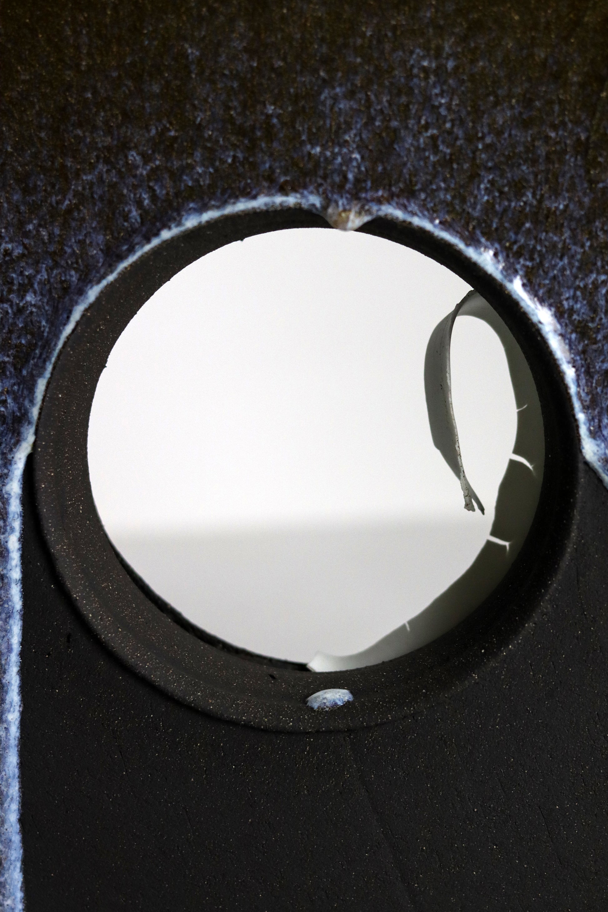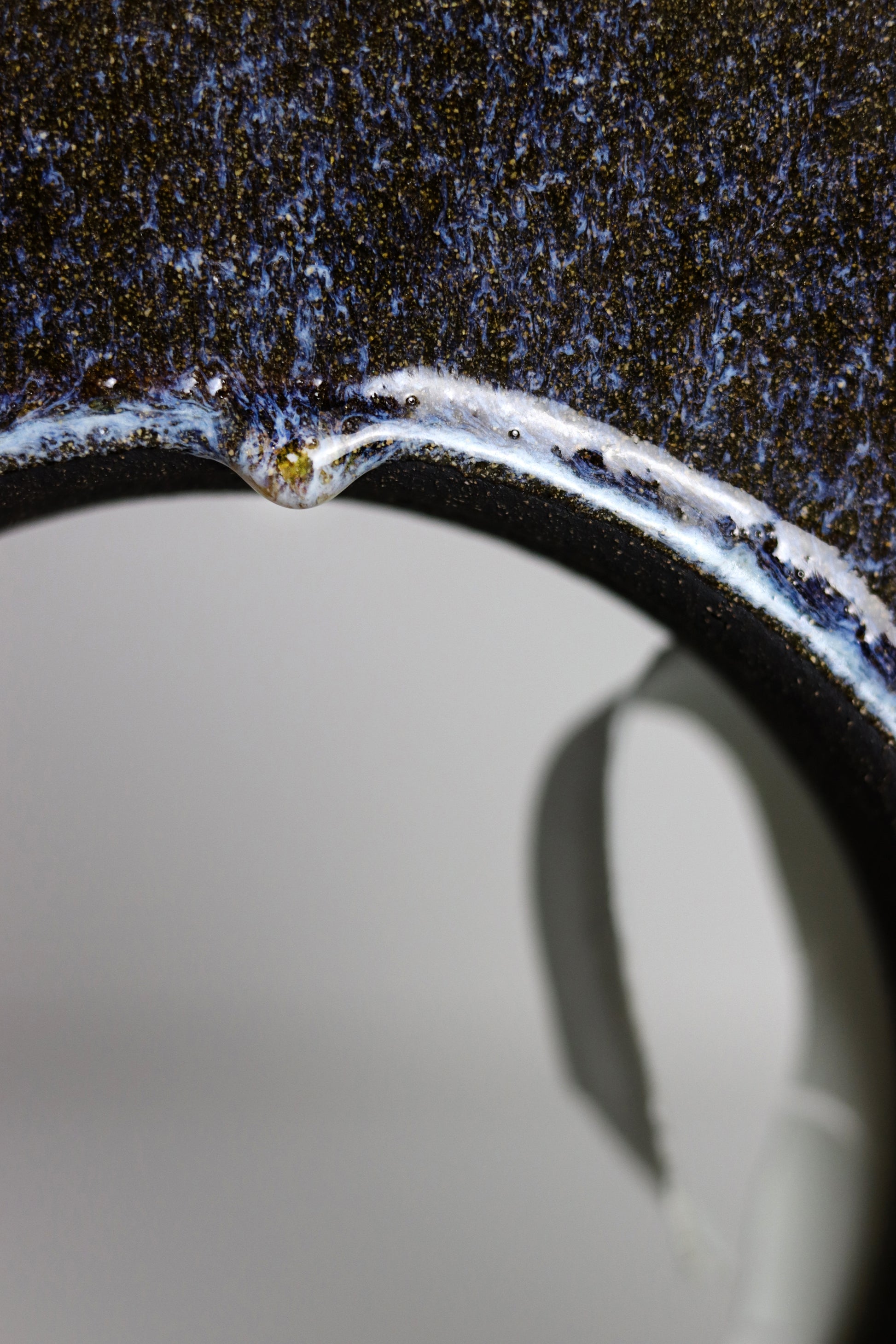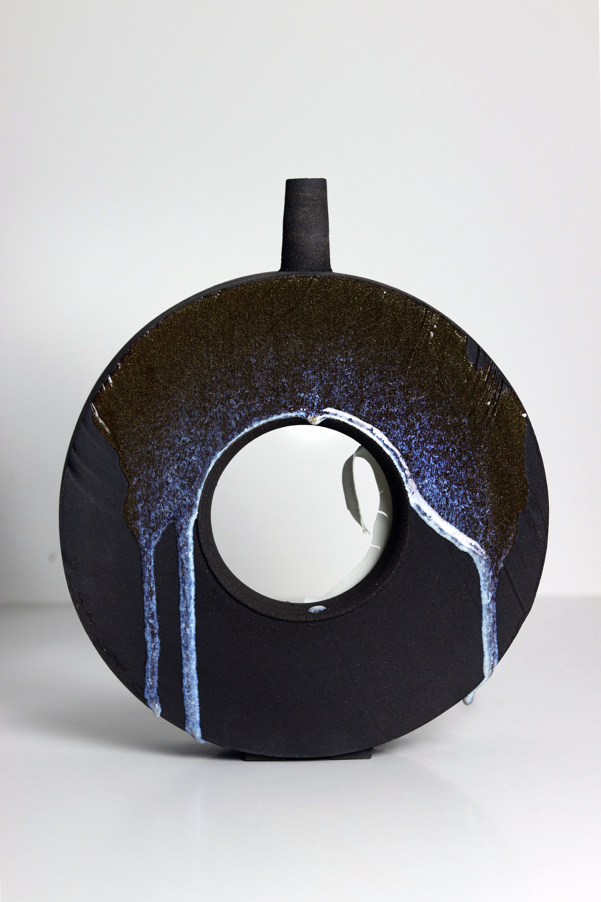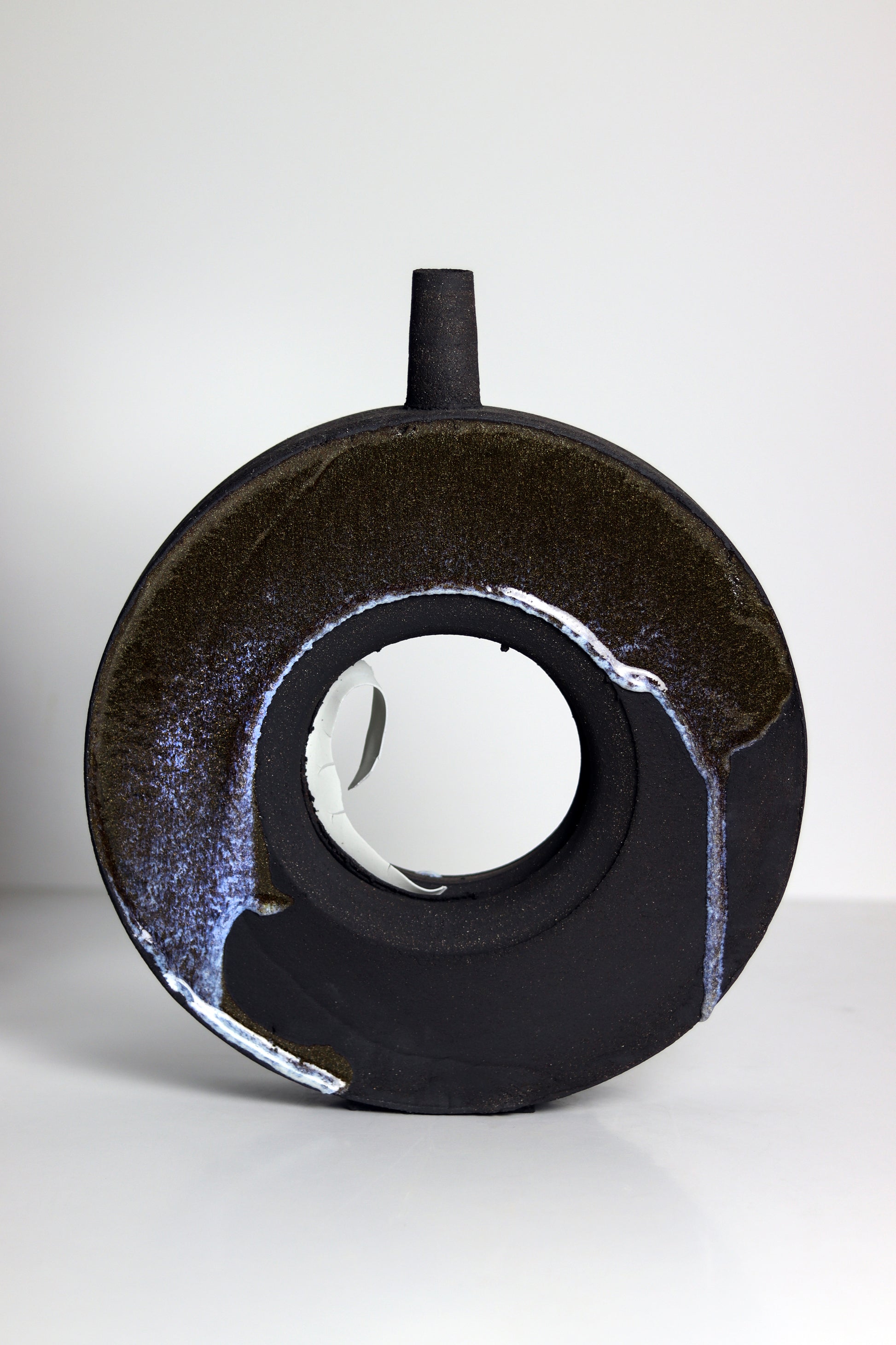 Korongozott kőcserép palack porcelánnal és művészmázzal, oxidációban égetve a Circulation sorozatból. Készült oxidációban 2024-ben.